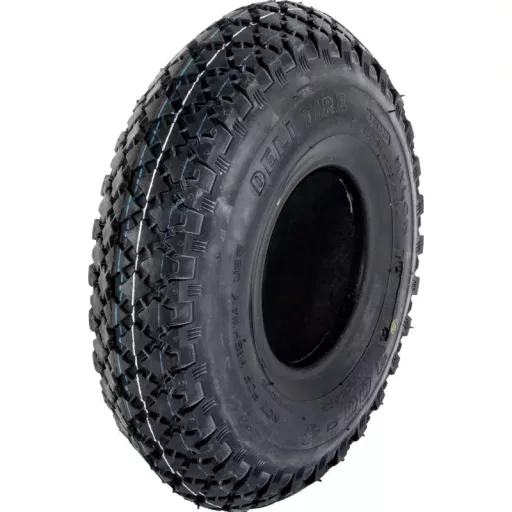 A 4.00-4 külső gumi Deli 4PR ideális abroncs fűnyírókhoz, talicskákhoz, kerti utánfutókhoz, kézikocsikhoz, kisebb ipari szállítóeszközökhöz és mezőgazdasági kiskocsikhoz. A 4PR (négy rétegű) kivitel megfelelő teherbírást és hosszú élettartamot kínál, miközben rugalmas marad a biztonságos és kényelmes használat érdekében.