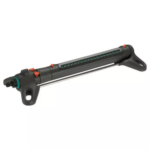- Pontos és egyenletes, tócsamentes vízelosztás nagyméretű gyepfelületeken. Az AquaZoom L 28-350 m² nagyságú területeken hatékony. A permet hatósugara (7-21 méter) és a permetezés szélessége (4-17 méter) könnyedén állítható a csúszka segítségével.