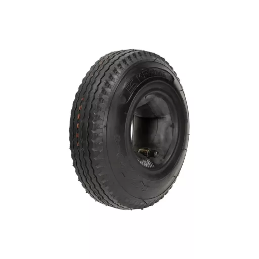 A Gopart 2.50/2.80-4 méretű külső gumi készlet tartalmaz egy 4 PR (négy rétegű) abroncsot és a hozzá tartozó belső gumit, így komplett, azonnal szerelhető megoldást kínál molnárkocsihoz vagy talicskához. A robusztus mintázat biztosítja a jó tapadást és stabil futást, miközben a 4 rétegű szerkezet megfelelő teherbírást és hosszú élettartamot biztosít könnyű és közepes igénybevétel esetén. Kiváló választás háztáji, kertészeti vagy ipari munkákhoz, ahol fontos a megbízhatóság és a gazdaságos megoldás.