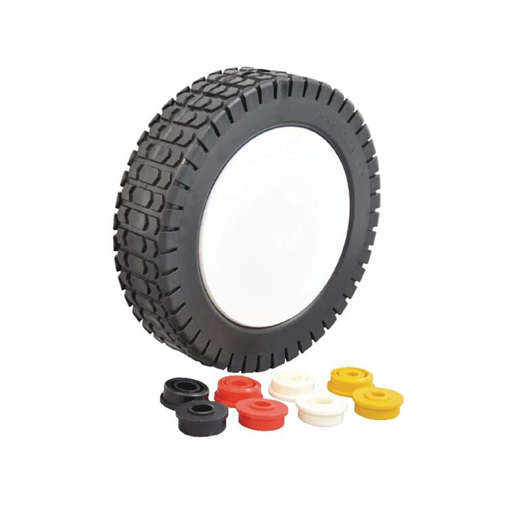 A Kisméretű műanyag kerék 150 x 36 mm (tengely adapterekkel) ideális választás kerti gépekhez, fűnyírókhoz és könnyebb ipari vagy műhelyi berendezésekhez. A mellékelt tengelyadapterek megkönnyítik a különböző átmérőjű tengelyekhez történő illesztést. Ha a kerék kopott, repedt vagy lötyög a tengelyen, a csere javítja a stabilitást és a gördülési komfortot.