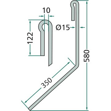 Az alkatrész méretei: hossz 580 mm, anyagvastagság 15 mm, ami rendkívül erős és strapabíró kivitelre utal. Ez a masszív szerkezet hosszú élettartamot biztosít még intenzív használat és nagy terhelés mellett is. Az elem egyenként rendelhető, így mindig pontosan a szükséges darabszám szerezhető be karbantartáshoz vagy pótláshoz.