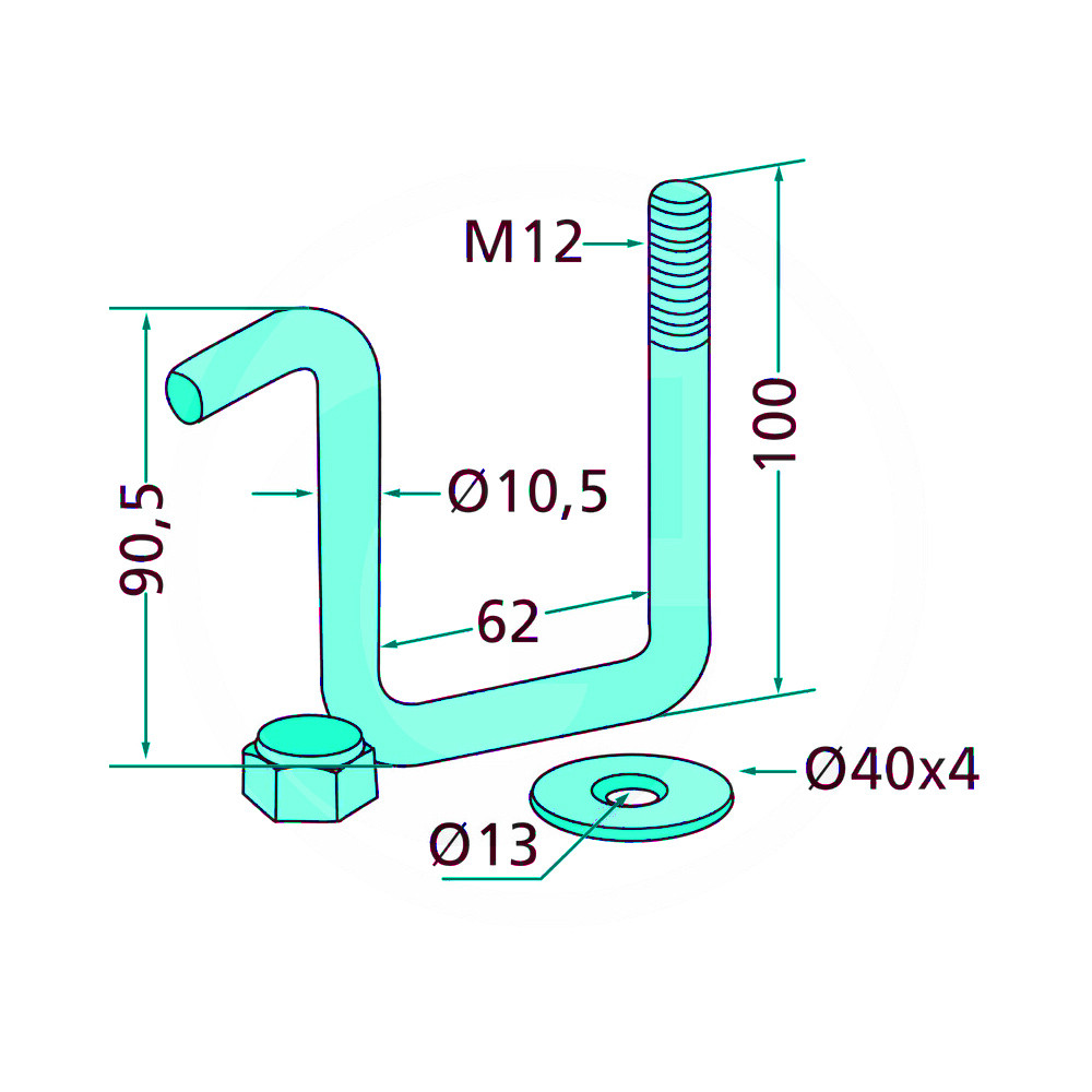 Főbb jellemzői: menet M12, keretméret 60 x 60 mm, amelyek a masszív illeszkedést és a biztonságos rögzítést garantálják. Az alkatrész egyenként rendelhető, így mindig a szükséges mennyiség beszerezhető a karbantartási vagy javítási munkákhoz.