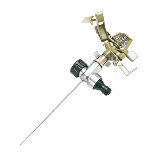 A GRANIT impulzus esőztető (cikkszám: 26070264) megbízható és tartós megoldás nagyobb, kör vagy szektor alakú gyepfelületek öntözésére. Az impulzusos szórófej szórási szöge 20° és 360° között szabadon beállítható, így pontosan szabályozható, mely területet érjen el az öntözés. A szórási távolság akár 12–15 méter is lehet, így jelentős felület lefedésére is alkalmas.
